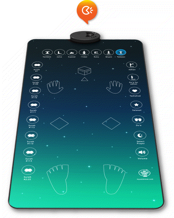 The prayer Mat is fully interactive and touch-sensitive, with pre-recorded prayer times, instructions on how to do wudu, recite surahs, say Duas, and much more.